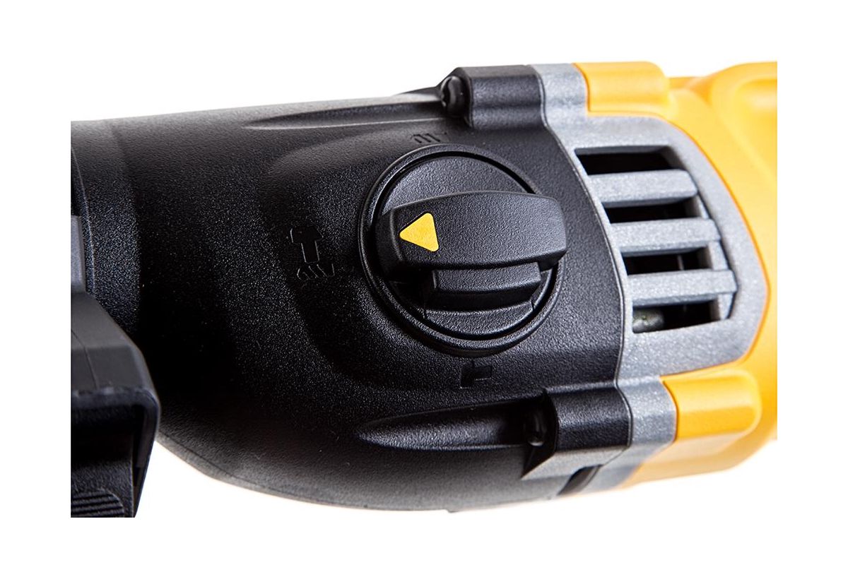 DEWALT D25143K - сетевой перфоратор для ремонта и стройки. Мощность 900 Вт, максимальная энергия удара 3,2 Дж. Работает в трёх режимах: сверления с ударом и без, а также долбления. В ударном режиме бурит бетон, камень и кирпич, в безударном сверлит дерево и металл.