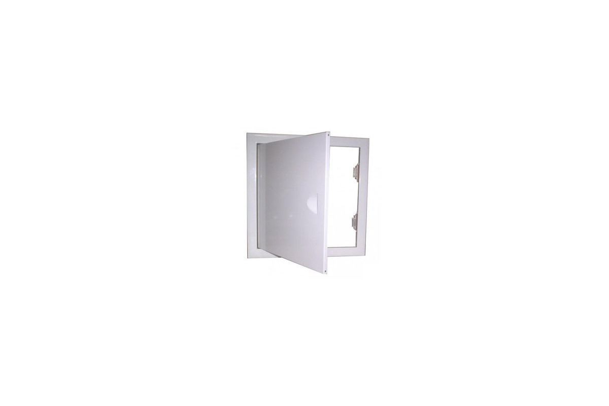 Толщина используемой стали составляет 0,8 мм. Благодаря сварке высокого качества, швы на ревизионном люке почти не заметны, кроме того, увеличивается уровень надежности и долговечности люка. Ревизионные металлические люки окрашены порошковой эмалью белого цвета, усиливающей их устойчивость к коррозии.