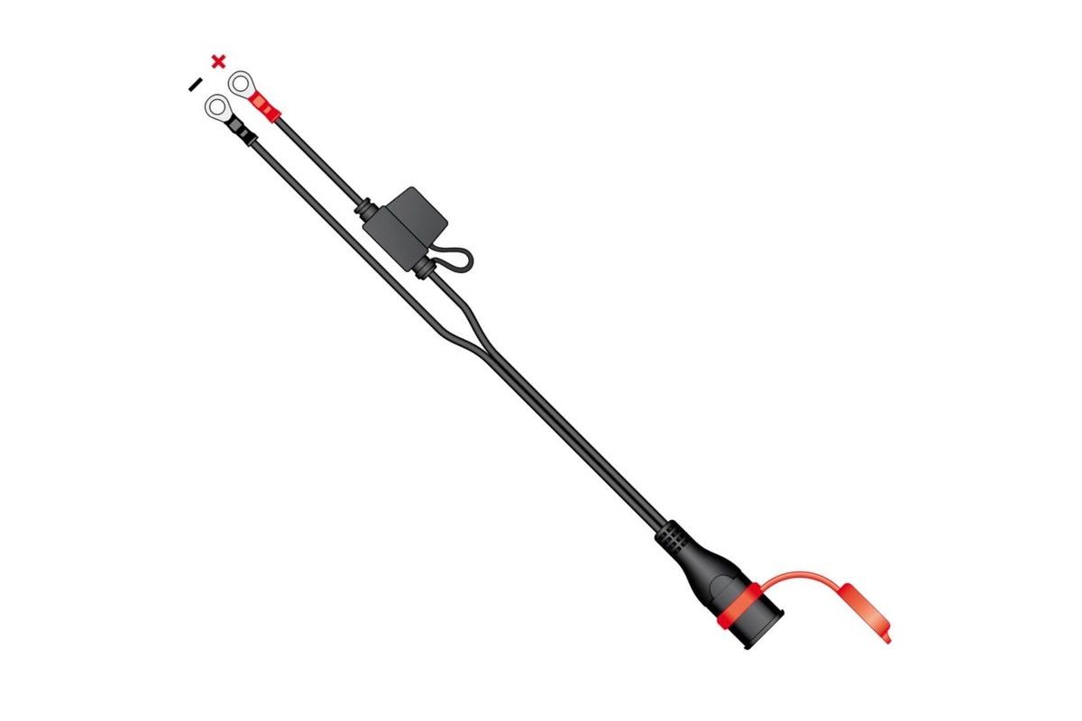 Кабель с клеммами-шайбами (под болт М6) позволяет заряжать аккумуляторную батарею транспортного средства без кабеля типа ''крокодил''. Идеально подходит для транспортных средств с ограниченным подкапотным пространством и труднодоступной АКБ. Разъем подключения SAE. Температурный режим -40…+40С.