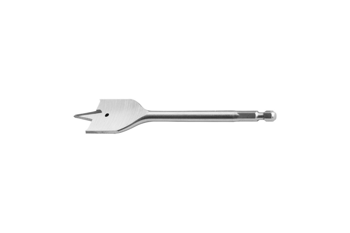 Сверло перовое изготовлено из углеродистой стали. Твердость режущих кромок 45–54 HRС. Может использоваться с ручной механической и электрической дрелями, а также сверлильными станками. Имеет плечевое заострение. Хвостовик шестигранной формы предотвращает проворот сверла в патроне. Сверла от 16 до 40 мм, могут использоваться с удлинителем 70495. Сверло перовое предназначено для получения отверстий в мягкой и твердой древесине с любым расположением волокон, клееной фанере, ДСП.