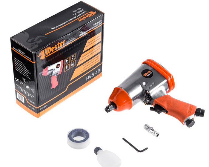 WESTER HSS-10 – пневматический гайковерт с ударным механизмом. Используется для откручивания и закручивания гаек на автомобильных дисках. Хвостовик 1/2'' (13мм).
