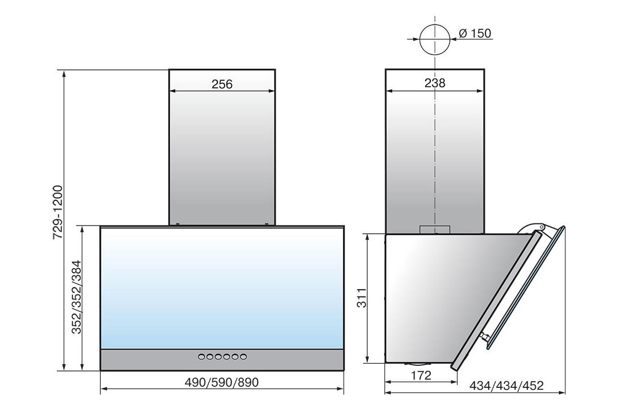 - Ширина вытяжки: 590 см;