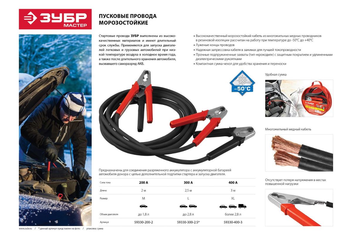 Надёжная запрессовка кабеля в зажимах для лучшей токопроводности. Прочные подпружиненные захваты (тип ''Крокодил'') с защитным покрытием и