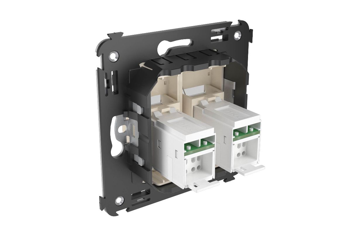 Компьютерная розетка двойная используется для подключения телефонных/компьютерных кабелей и подключения патч-панелей. Компьютерная розетка предназначена для скрытого монтажа в стену.