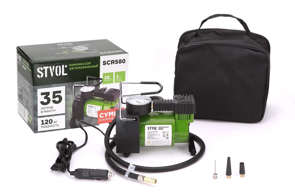 Автомобильный компрессор Stvol SCR580 будет незаменимым помощником автолюбителю, и не только. С помощью компрессора Stvol SCR580 с производительностью накачивания 35 литров в минуту, вы сможете накачать автомобильное колесо радиусом 16 дюймов менее чем за 2 минуты.