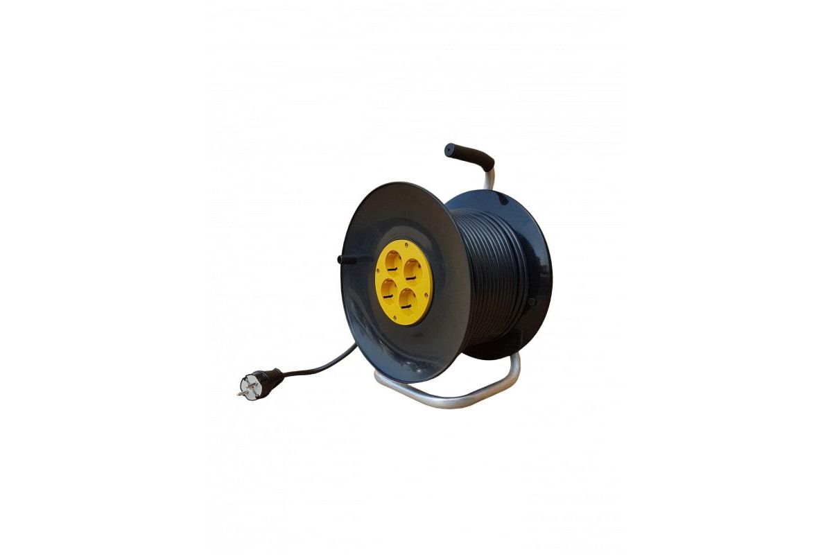 Удлинитель на катушке с четырьмя открытыми розетками для работы по дому и даче.