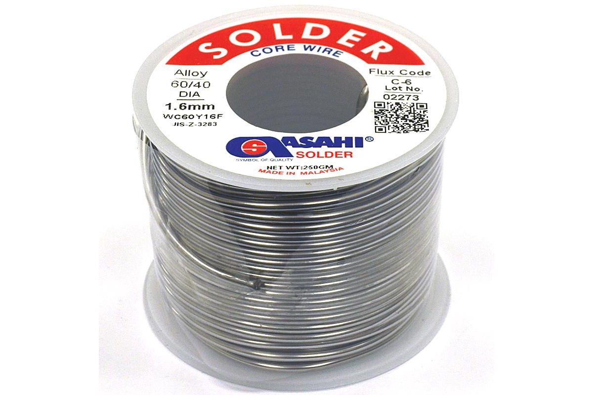 Диаметр - 1.6 мм. Состав - 60% олово / 40% свинец, аналог ПОС-61. Температура плавления - 191 град. Масса припоя на катушке – 0.25 кг. Флюс C-6 органический водорастворимый. Содержание галогенных соединений во флюсе - 1.0 %. Массовая доля флюса в припое – 2.3+/-0.2 C-6 обладает высокой активностью (ROH1). Он специально разработан для применения в технологии с водной отмывкой. После пайки припоем с флюсом C-6 отмывку необходимо произвести в течение нескольких часов.