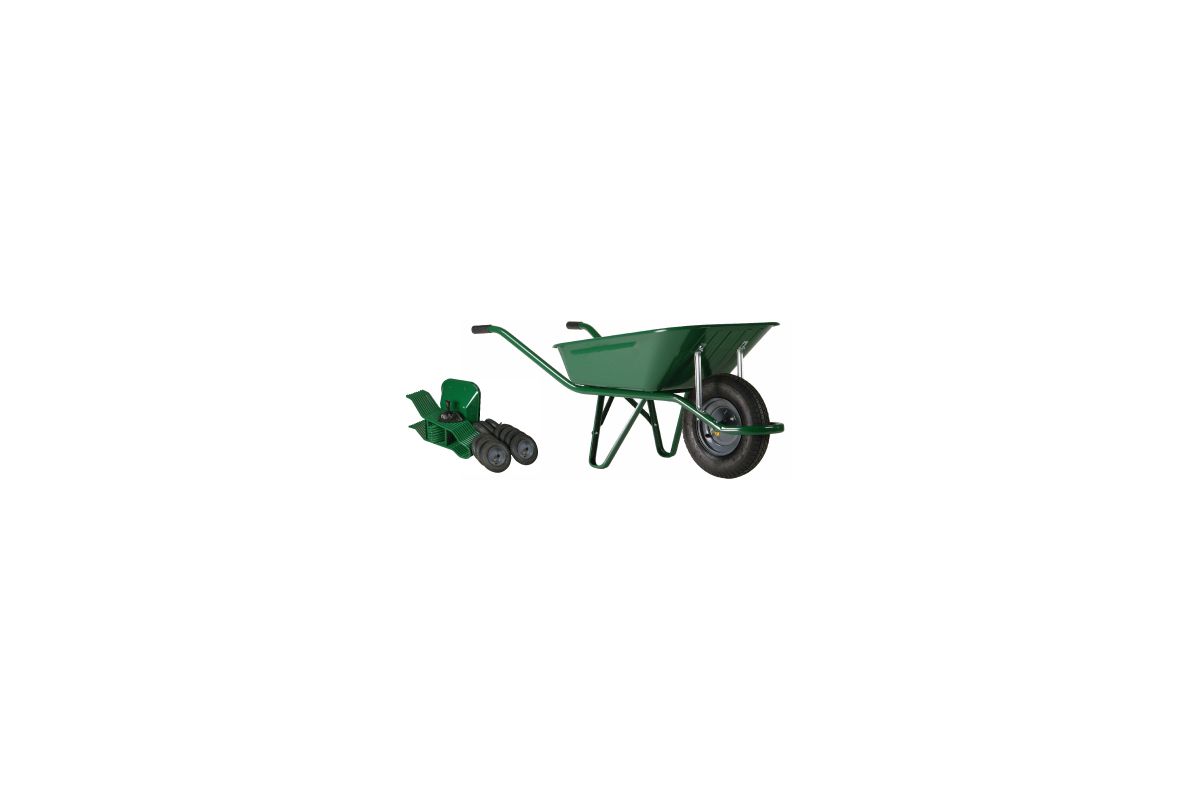 Одноколесная тачка с окрашенным корытом для тяжелых строительных работ. Цвет: зеленый.