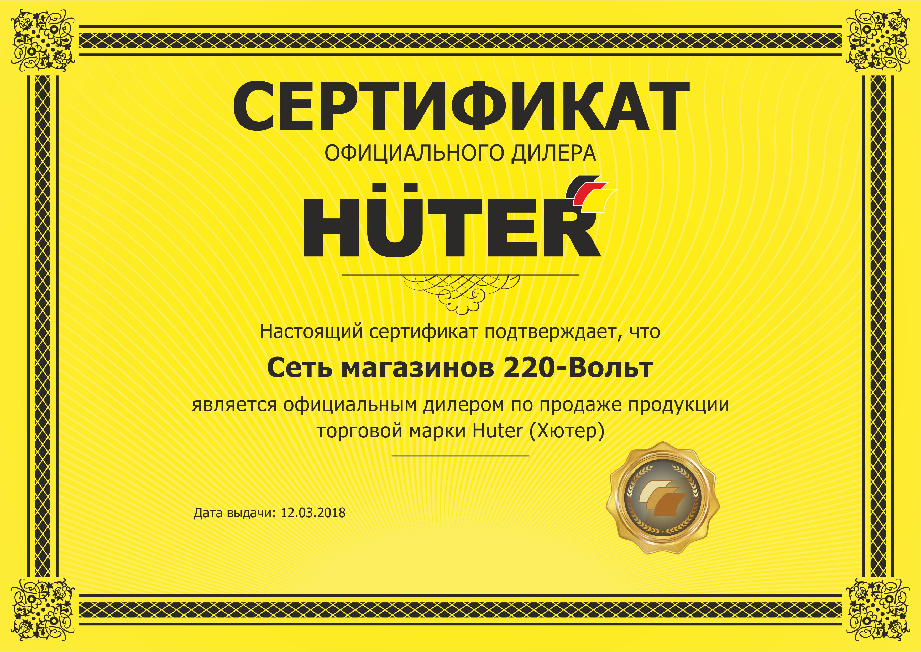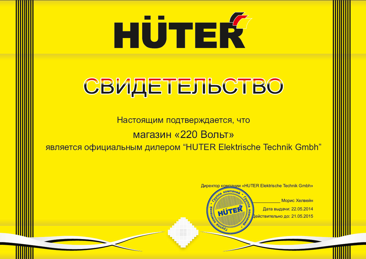 На всю реализуемую продукцию компании Huter действует фирменная гарантия производителя сроком 12 месяцев.