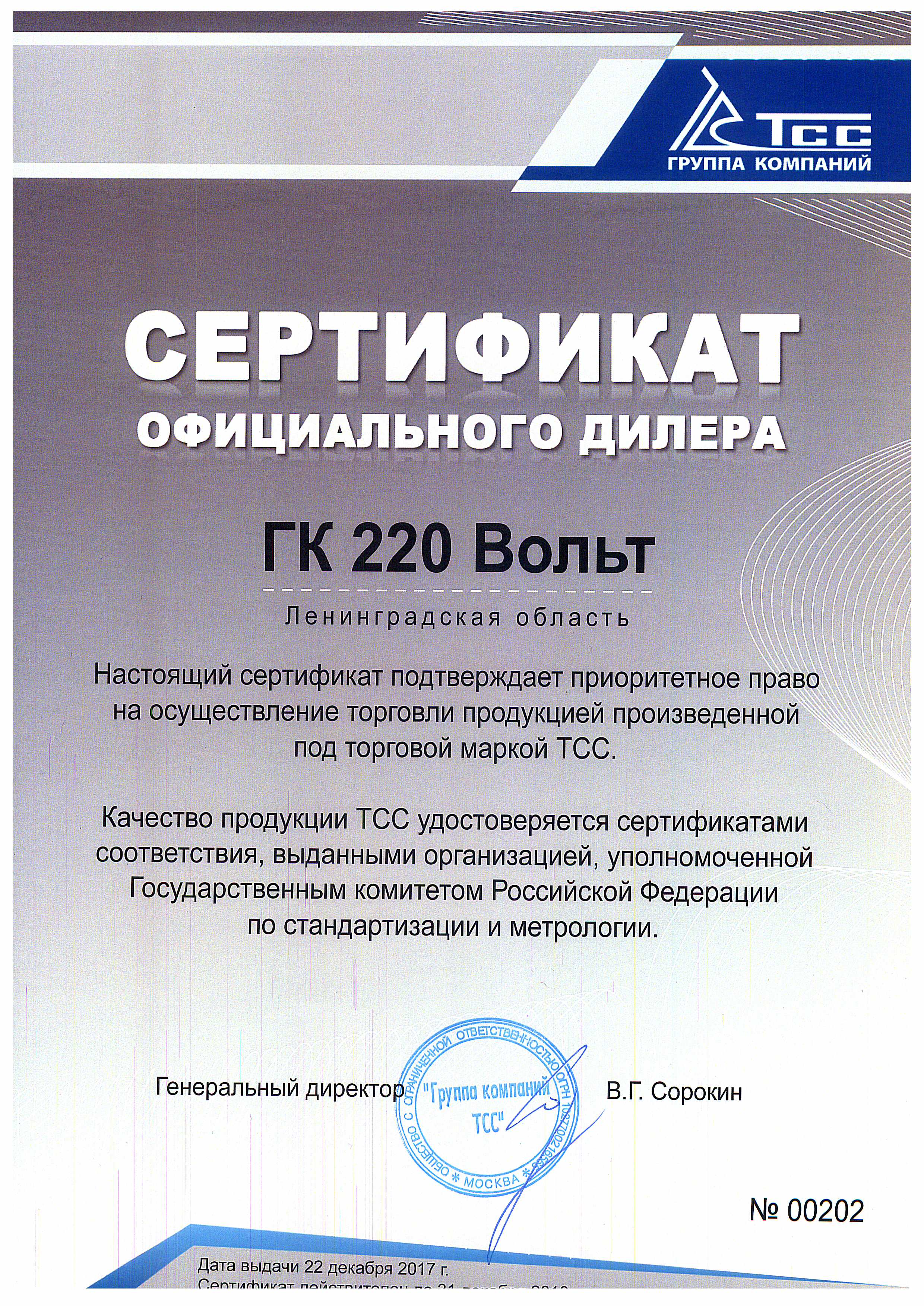 Востребованность оборудования ТСС государственными структурами — видимый показатель надёжности продукции. Кроме того, она обладает 14 сертификатами качества. Гарантия — 12 месяцев.